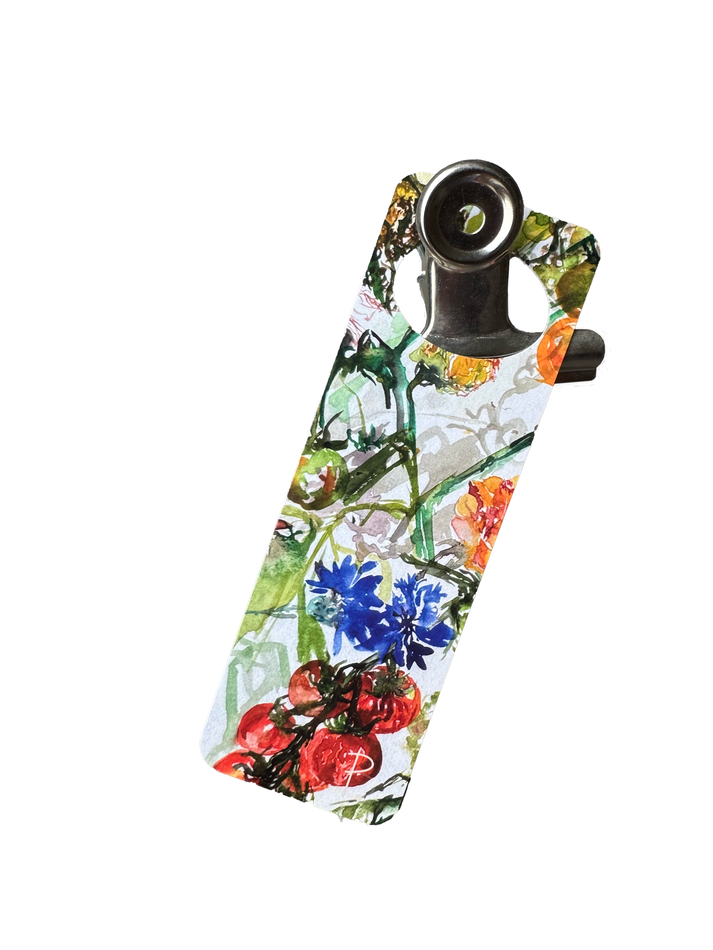 A bookmark colorful floral oil painting featuring various flowers, including red, blue, and orange.